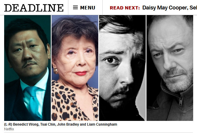 10月29日,网飞科幻剧系列《三体》确定了12位演职人员。这个演员阵容集合了漫威漫画、全友等优秀作品,演员阵容非常豪华。在这些演员中,本尼迪特王、周采芹、约翰C布莱德利、利亚姆坎宁安、约翰埃德加爱伦坡、艾莎冈萨雷斯、马洛凯利和其他人都很有名。贝尼迪.